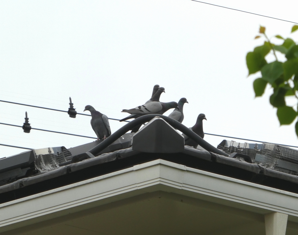 夕方前、バードブロッカー設置中にも関わらず、ここをねぐらにしているハトが戻ってきました。このようにハトは帰巣本能が非常に強い鳥類です。