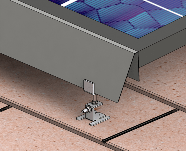 金属屋根に直付工法で設置された太陽光パネルにバードブロッカーを設置する場合、掴み金具(架台)が妨げになるため、バードブロッカー部材が通常よりも多く必要になります。掴み金具の固定数に比例して部材の数量が変動します。
